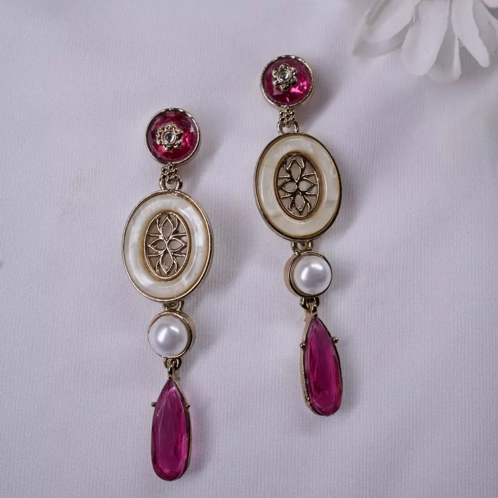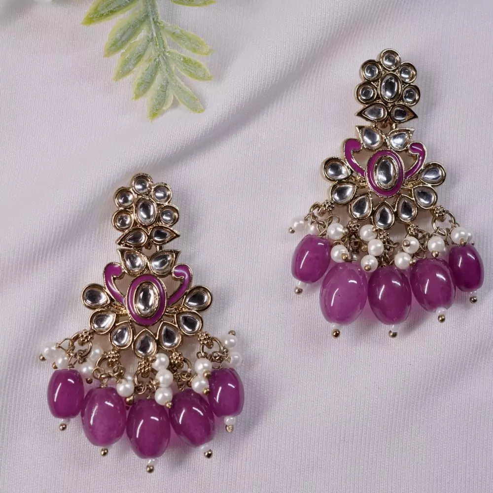 Aashisha – Pink Exquisite Indo western Chandbali Earrings with Pearls & Beads