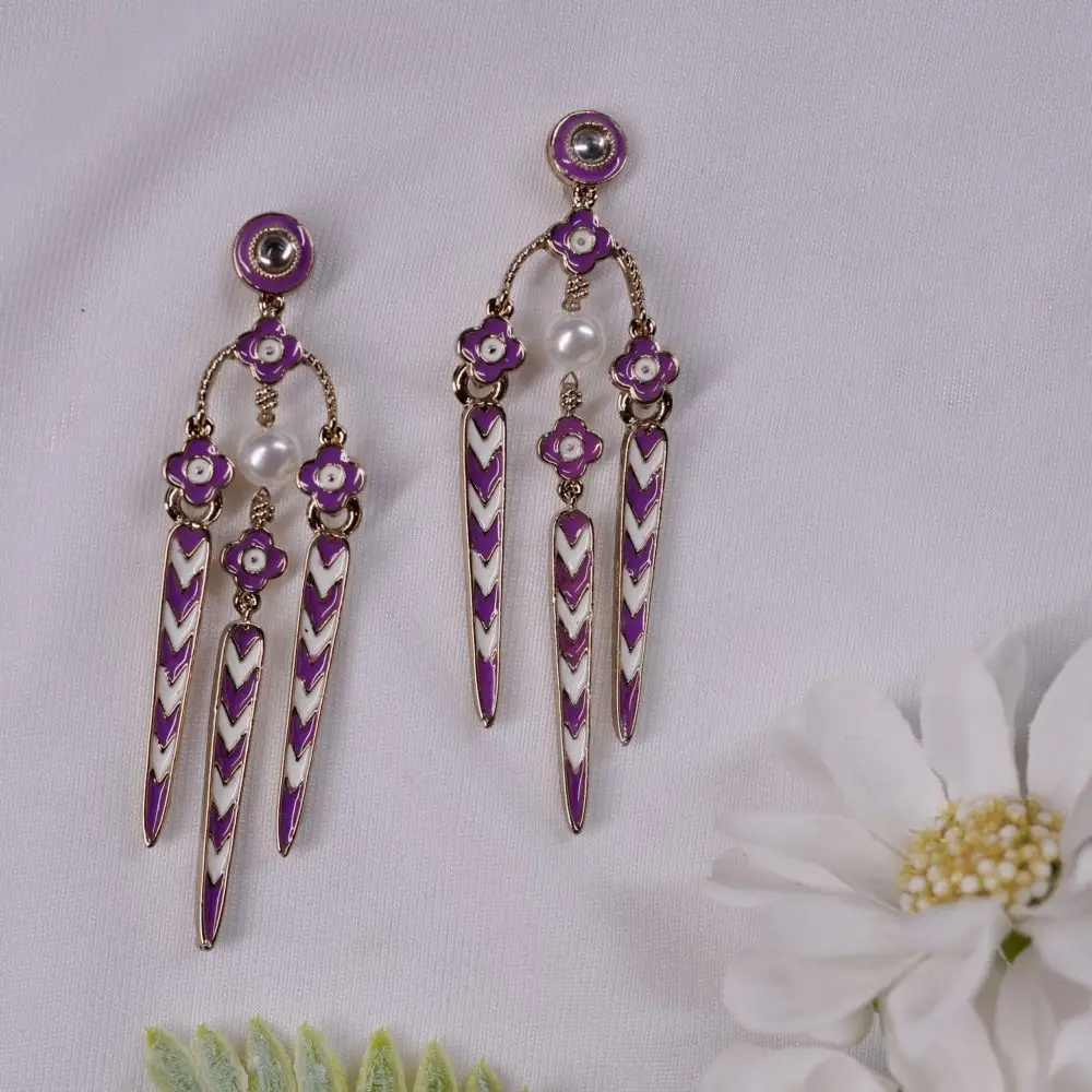 Adhyaya – Purple & Gold Meenakari Floral Dangle Earrings