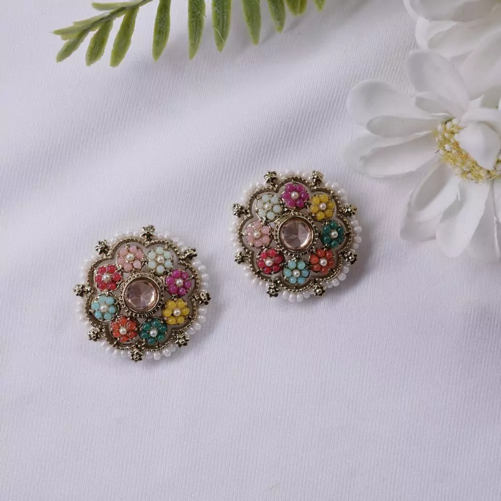 Aadvi – Multicolor Indo-western Stone Stud Earrings with Pearl Detailing