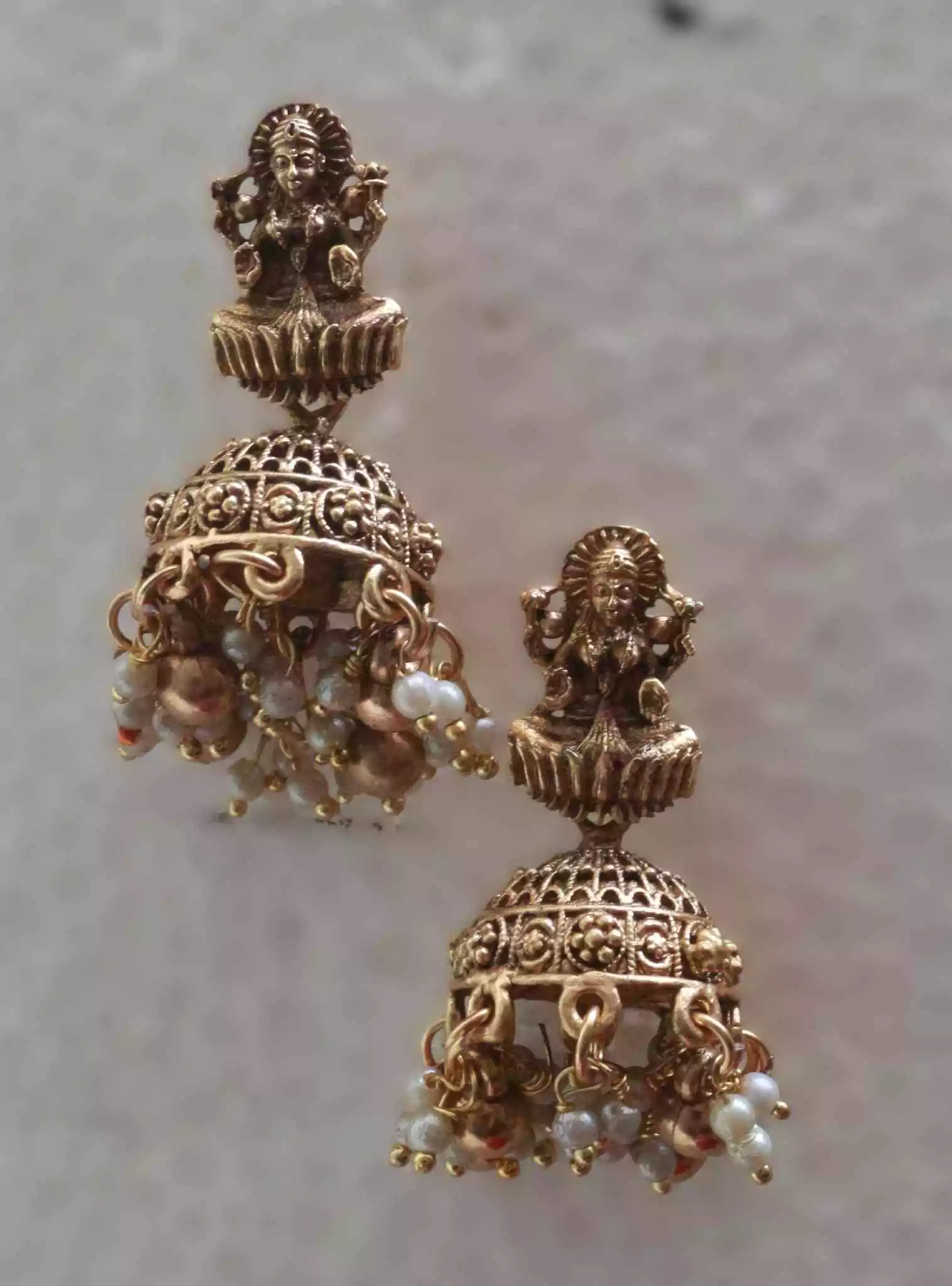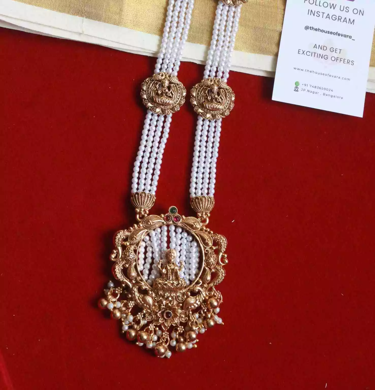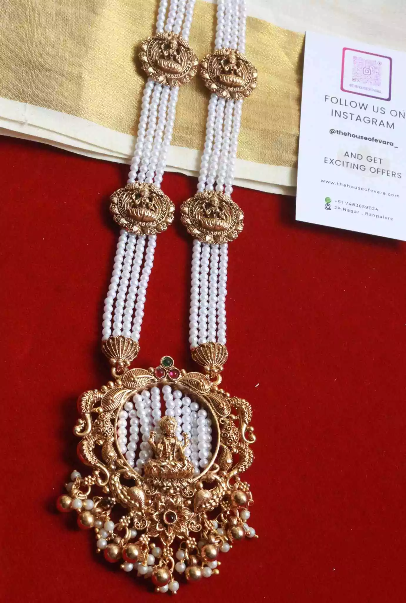 Design: Temple-style Lakshmi pendant with cascading pearl detailing